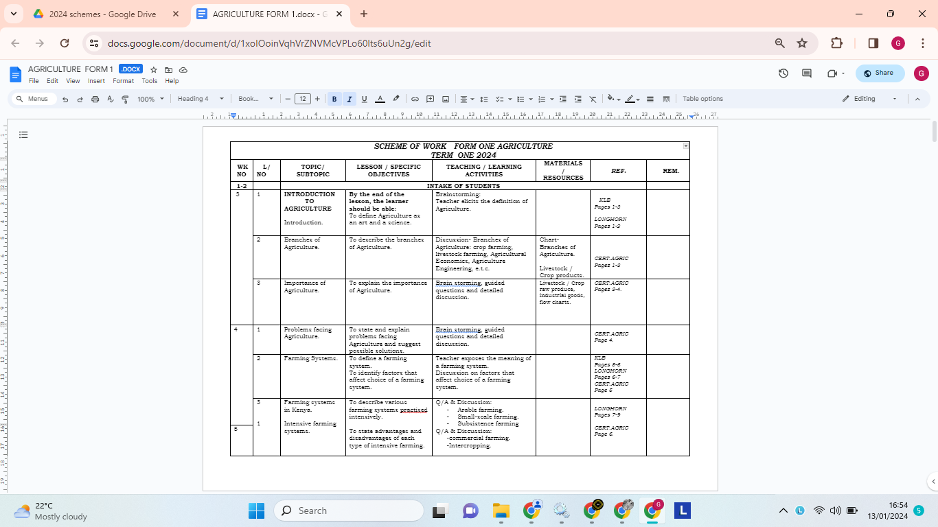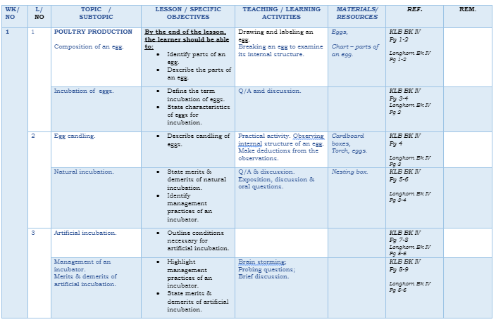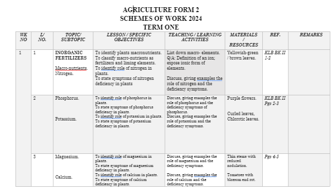 AGRICULTURE FORM 1 SCHEMES OF WORK 2024