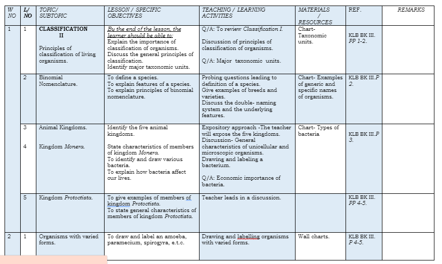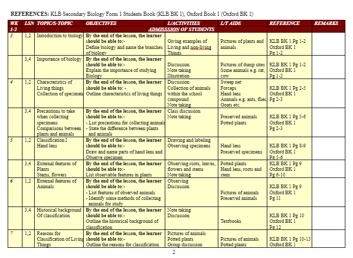 BIOLOGY FORM 1 2024 SCHEMES OF WORK