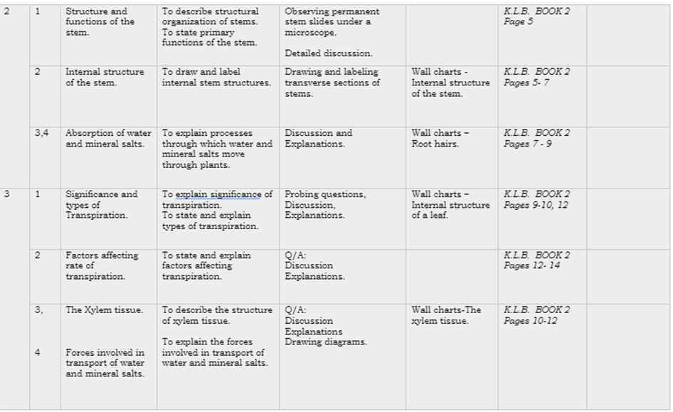 BIOLOGY FORM 4 2024 SCHEMES OF WORK