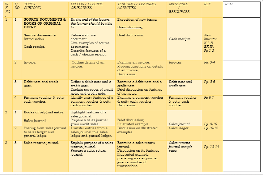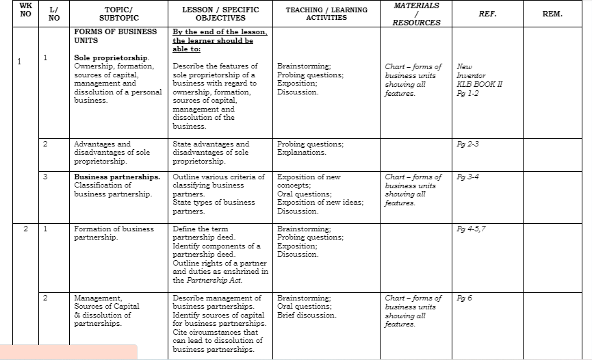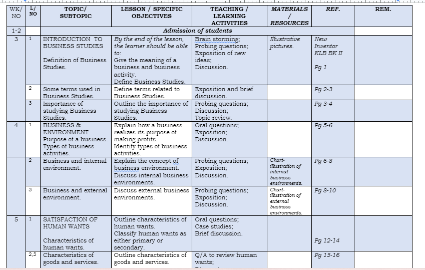 BUSINESS STUDIES FORM 1 2024 SCHEMES OF WORK
