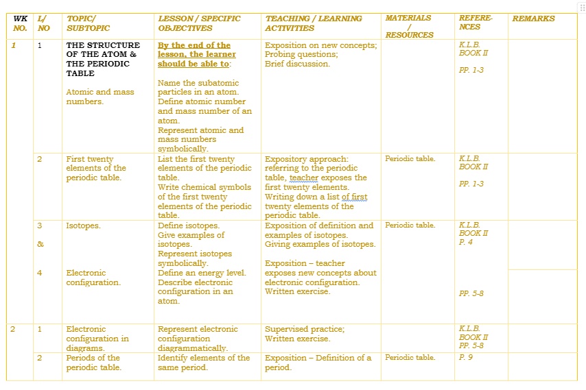 CHEMISTRY FORM 4 2024 SCHEMES OF WORK